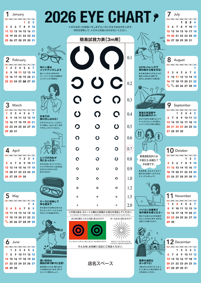 TOP 視力表カレンダーのお申込み クリックで拡大します。 A:スカイ B:ミント C:ライラック FAXでの申込みの際は下記をダウンロードしてください。 価格についてなどは詳細は必ず下記をダウンロードしてご確認ください。 FAX申込用紙・価格表等詳細案内PDF 申し込みフォーム ※入力箇所は備考以外、必須項目となります。 貴社名 ※㈱や㈲では文字化けしてしまうため「株式会社」「有限会社」のように入力してください。 ご担当者様名 フリガナ メールアドレス 確認のためもう一度 郵便番号 ※ハイフン無し ご住所 都道府県 【選択して下さい】 北海道 青森県 岩手県 秋田県 宮城県 山形県 福島県 栃木県 群馬県 茨城県 埼玉県 東京都 千葉県 神奈川県 山梨県 長野県 新潟県 富山県 石川県 福井県 静岡県 岐阜県 愛知県 三重県 滋賀県 京都府 大阪府 兵庫県 奈良県 和歌山県 徳島県 香川県 愛媛県 高知県 鳥取県 島根県 岡山県 広島県 山口県 福岡県 佐賀県 長崎県 大分県 熊本県 宮崎県 鹿児島県 沖縄県 市区町村 丁目番地 電話番号 制作希望物 A:スカイ B:ミント C:ライラック オリジナルカラー 部数 ※1000部以降の場合は別途お見積となります。 ビニール袋(筒)※有料 必要 不要 備考欄(任意) 送信確認 ※お問合せいただく際には必ず、「個人情報保護方針について」をお読み頂き、ご同意いただいた上でチェックをお願いします。メールを送信いただいた段階で「個人情報保護方針について」の内容にご同意いただいたものとさせ ていただきます。同意する。 送信する リセット メガネ格安チラシ過去のデザインを見る